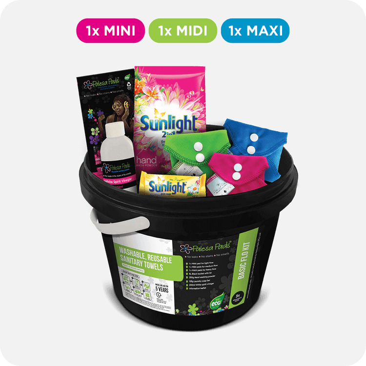 It would be ideal to own three to six Palesa Pads if possible. This will allow you to wear one pad and keep a second pad as a back-up, while you wash and dry your other pad/s. There’s no need to wash your pads in a washing machine but if you would like to do this and only want to wash your pads once during your monthly cycle, then it’s better to have 12 to 15 pads.