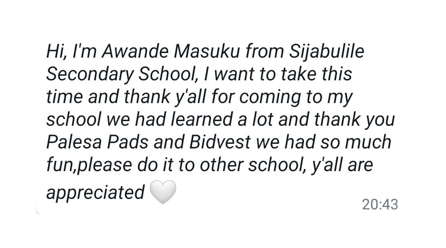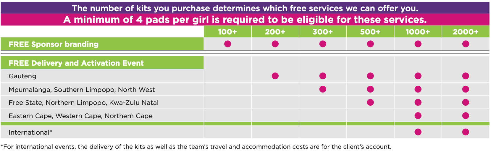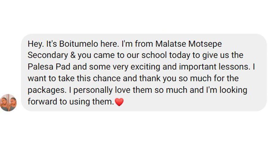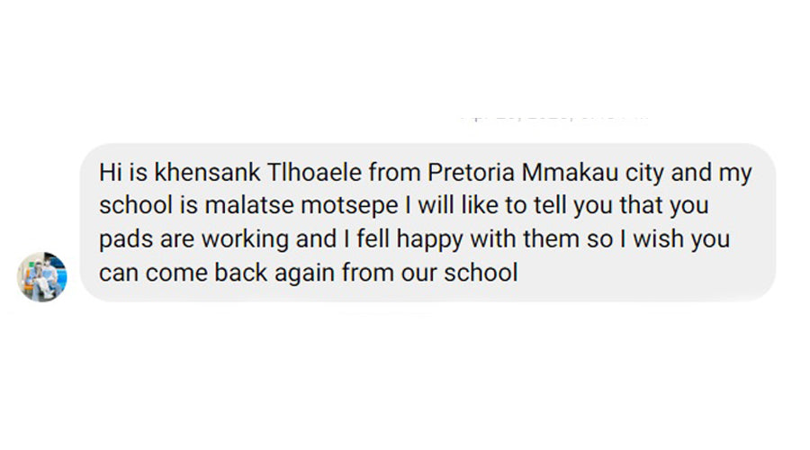 - We've visited over 200 schools in South Africa and neighbouring countries to hand out pads and teach girls about menstruation.
