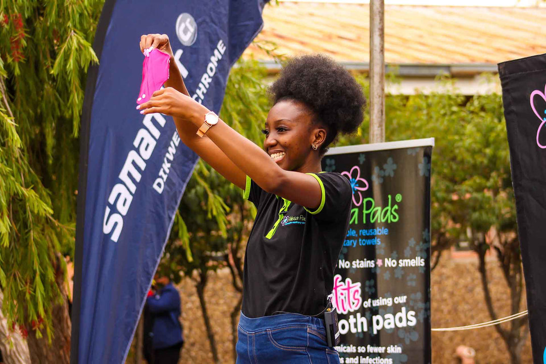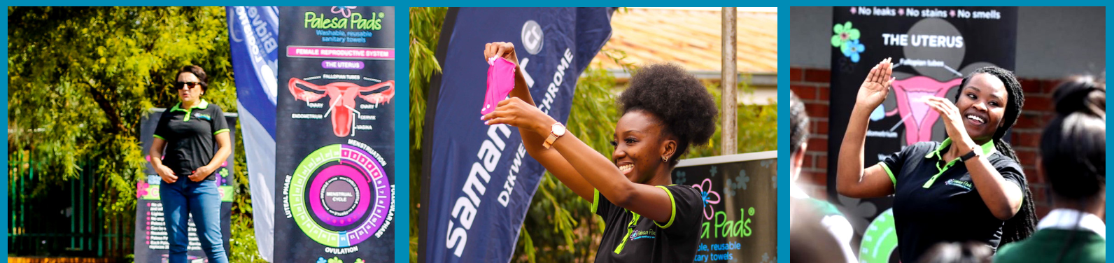 Our activation events are one hour long and consist of uplifting entertainment in the form of singing and dancing plus a menstrual health education talk and demonstration of how to use and wash Palesa Pads.